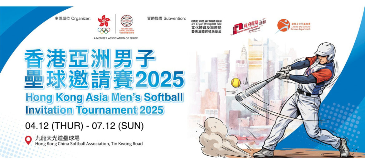 中國香港壘球總會主辦的「香港亞洲男子壘球邀請賽2025」將於 2025年12月4日至7日假九龍天光道壘球場舉行。今次賽事參賽隊伍包括中國香港男子隊、中國香港U19男子隊、中國廣東熊貓男子隊、日本大阪公立大學男子壘球隊、日本東香川男子壘球隊及中華台北燦佶機械隊。